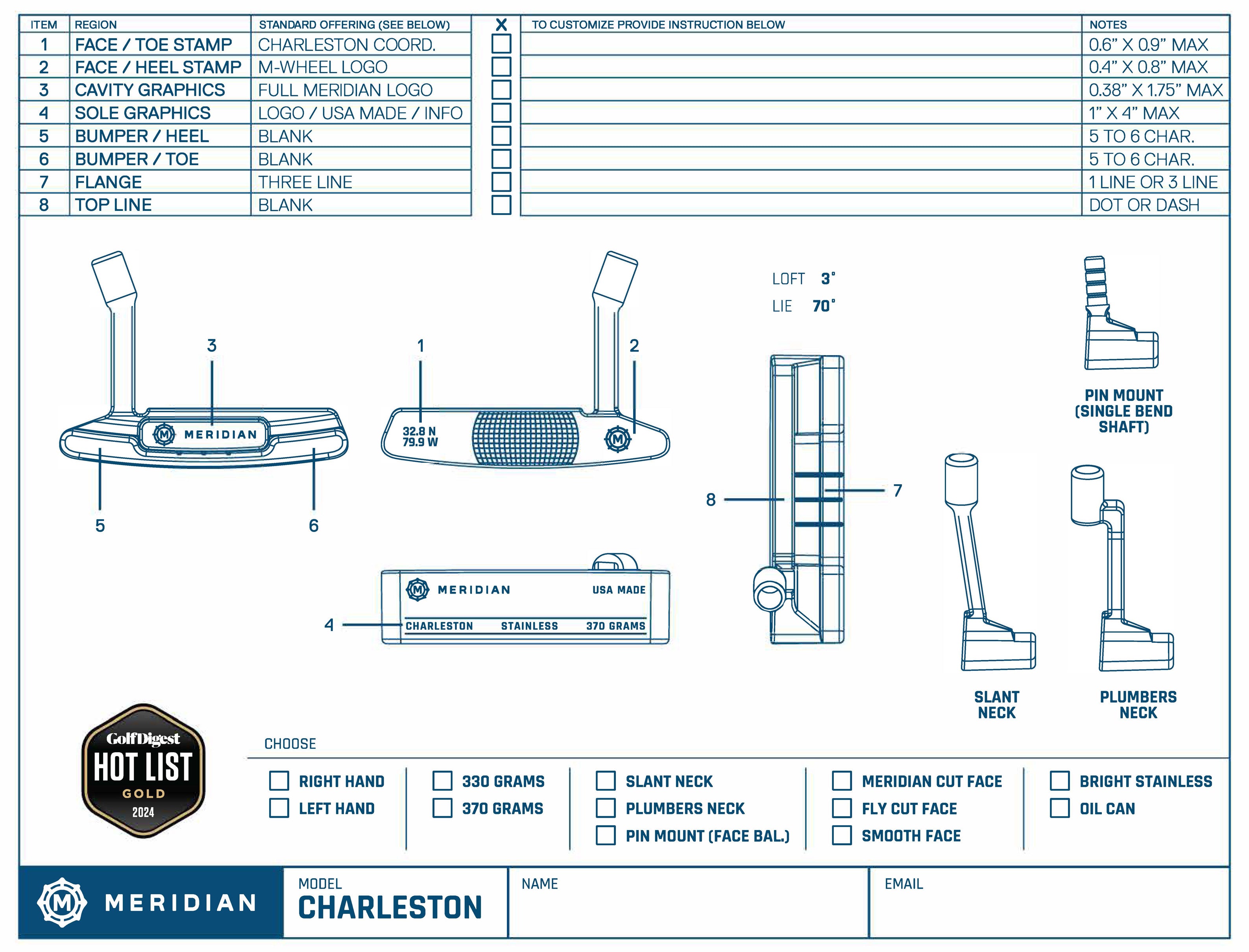 Personalize your Meridian putter by downloading the design print and emailing it to Support@meridianputters.com.